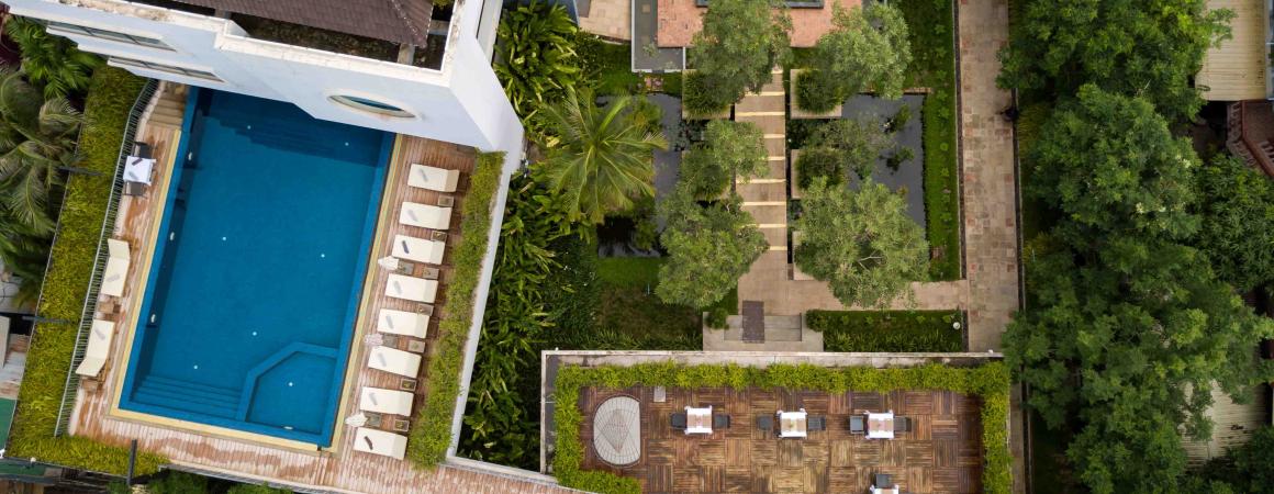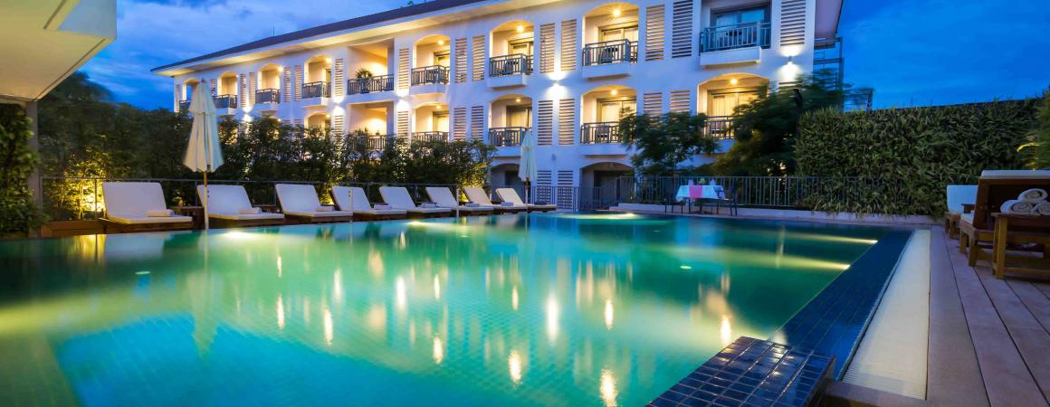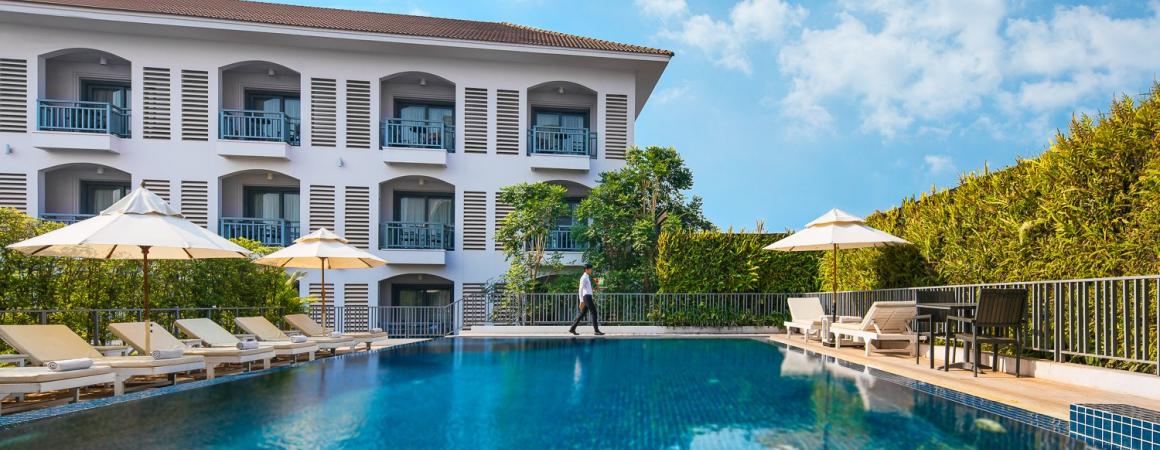 There is no better place to come home to after a hot day out exploring the Temples of Angkor, than the Damrei Angkor Hotel salt-water swimming pool and the pool bar.
