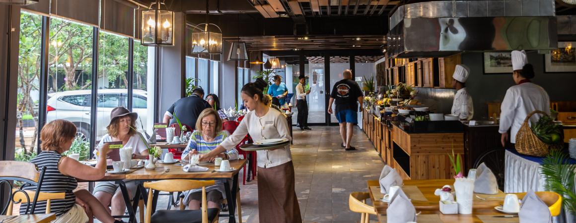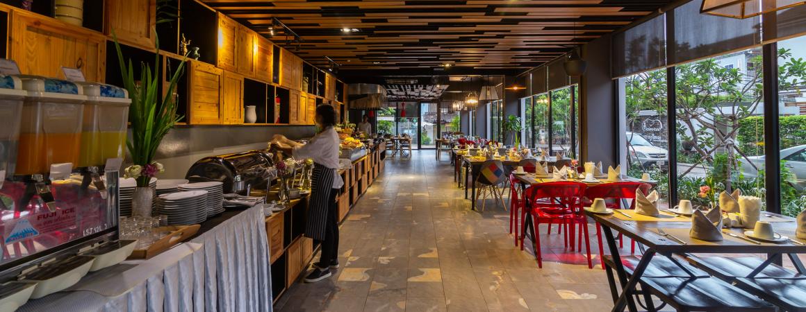 The Coffee Shop & Aira Restaurant at Damrei Angkor Hotel offers the best of Western, Asian and Khmer Cuisine. Breakfast 6.00 AM till 10.00 AM Lunch 11.30 AM till 2.30 PM Dinner 6.00 PM till 10.00 PM
